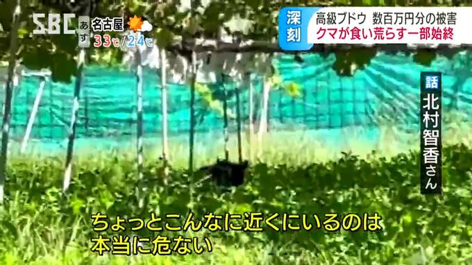 (北村さん)「あの辺はお散歩している方もいますし、私たちのブドウがなくなったらどんどん下に降りていっちゃのうで、ちょっとこんなに近くにいるのは本当に危ないな」