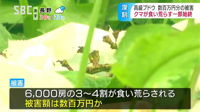 収穫を見込んでいたおよそ6000房のうち、3割から4割が食い荒らされ、被害額は数百万円に上るとみられています。