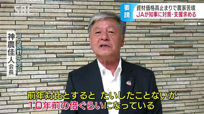 JA長野中央会によりますと肥料や燃料、農薬などの資材価格が高止まりし、生産コストが上昇している一方、適正な価格転嫁が進まず、県内の農家も苦境に立たされています。