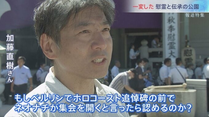 東京都は、状況を見て「そよ風」に集会をあきらめるよう伝えました。追悼碑の前で開催する目的について参加者に記者たちがマイクをむけると…