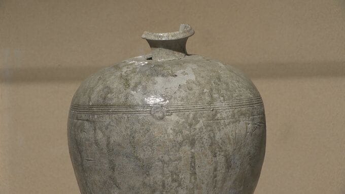 約1000年前に鎌倉時代に瀬戸で作られた均等で美しいフォルムの陶芸品は、神への供え物の酒を入れる「瓶子(へいし)」と呼ばれる焼き物の瓶です。この瓶子は、瀬戸地域で初めて人為的に釉薬がかけられたものといわれています。