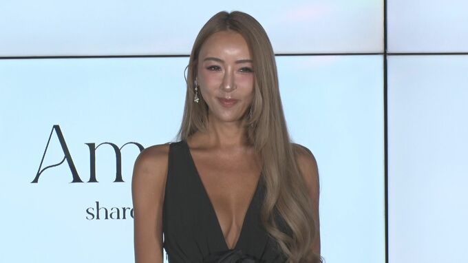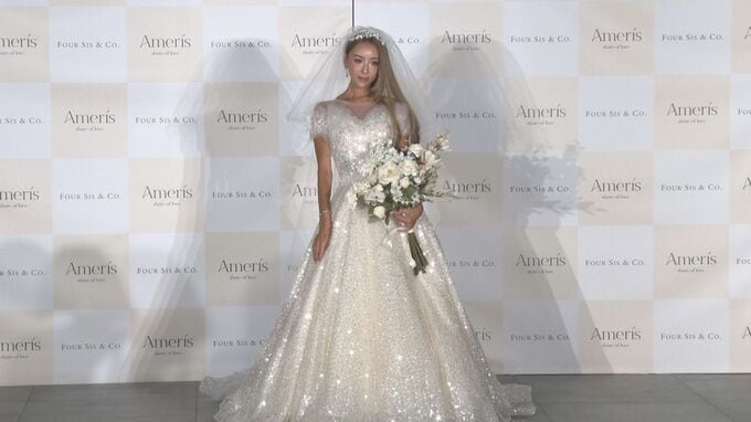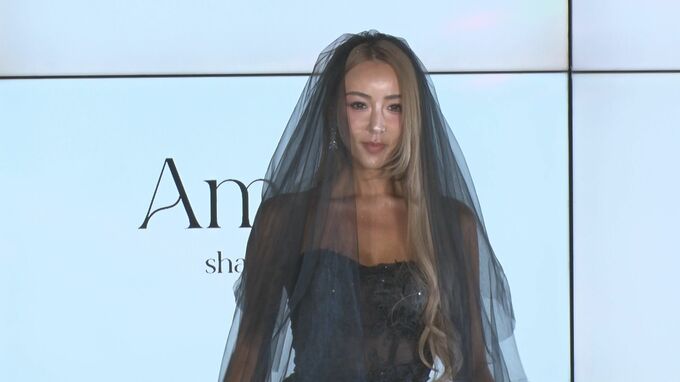 ウェディングブランド「Ameris」ローンチ発表会が行われ、プロデューサーを務めるGENKING.さんは胸元が大胆にカットされた黒いドレスで登壇しました。