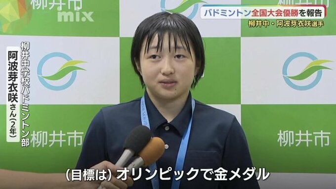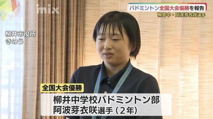 柳井市役所を訪れたのは柳井中学校2年の阿波芽衣咲選手です。