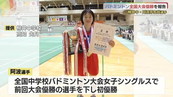 阿波選手は8月、高知県で開催されたバドミントンの全国大会の女子シングルス決勝で前回大会優勝の選手を下し、初優勝を果たしました。