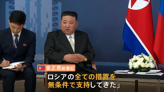 4年半ぶりとなるロシアと北朝鮮の首脳会談がきょう午後、行われました。会談では金正恩総書記がロシアへの全面的な支持を表明するなど、緊密ぶりをアピールしました。プーチン大統領「お会いできてうれしいです。…