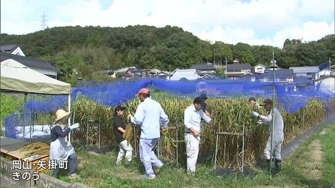 11月に皇居で営まれる新嘗祭(にいなめさい)に供える粟の収穫が、岡山県矢掛町で行われました。