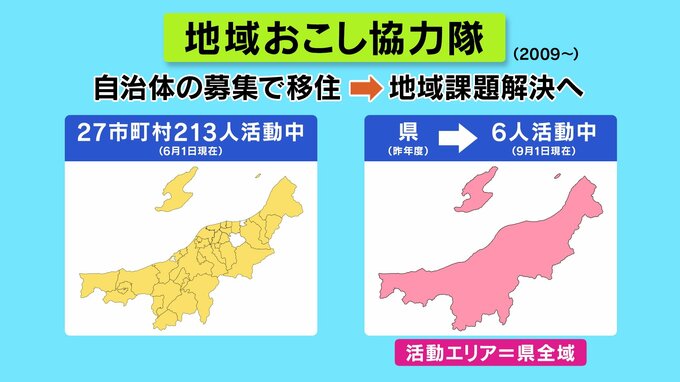 新潟県内では30市町村中、27の市町村が導入し213人が活動していますが、新潟県としても昨年度、協力隊員を初めて採用しました。9月1日現在、6人が活動しています。