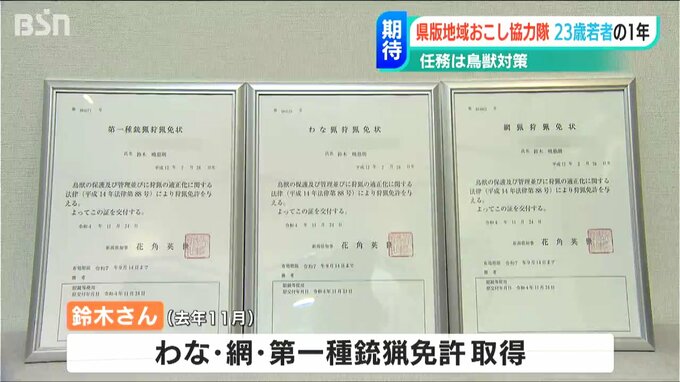 赴任してまもない去年は、先輩に教えてもらいながら、わな設置の講習を受けていました。その後、野生鳥獣を捕獲するわなの免許などを去年11月に取得。数えて100回、わなを設置する練習を自主的に重ねたといいます。