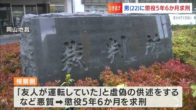 2023年2月、岡山市北区で車を運転し事故を立て続けに起こしながらも、その場から逃走した罪などに問われている男(22)について、岡山地裁で行われている裁判で、検察は男に対して懲役5年6か月を求刑しました。