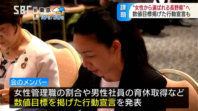 メンバーは、それぞれ、女性が働きやすい職場に向けて、女性管理職の割合や男性社員の育休取得などについて数値目標を掲げた行動宣言を発表。