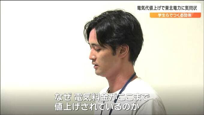 今年6月から家庭向けの電気料金を値上げした東北電力に対し、学生らでつくる団体が14日、質問状を提出しました。過去最高の経常利益が予想される中で、なぜ、電気料金の値下げを検討しないのかなどと質しました。…