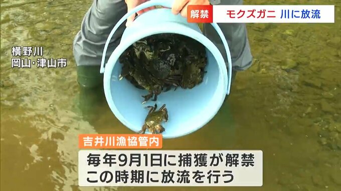 放流されたうち、捕獲されなかったモクズガニは川を下り、11月から12月にかけて河口で産卵をするということです。