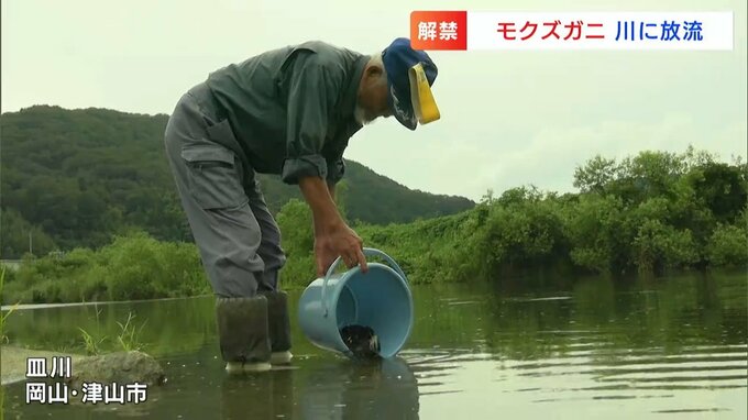 島根県で獲れた、ふ化して3年程度のカニ約100匹を、漁協の組合員が手分けをして、吉井川の支流4か所に放流していきました。