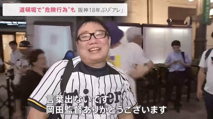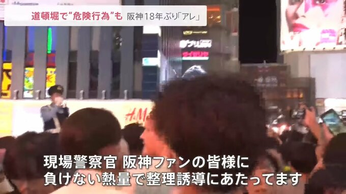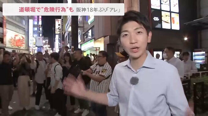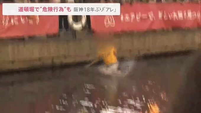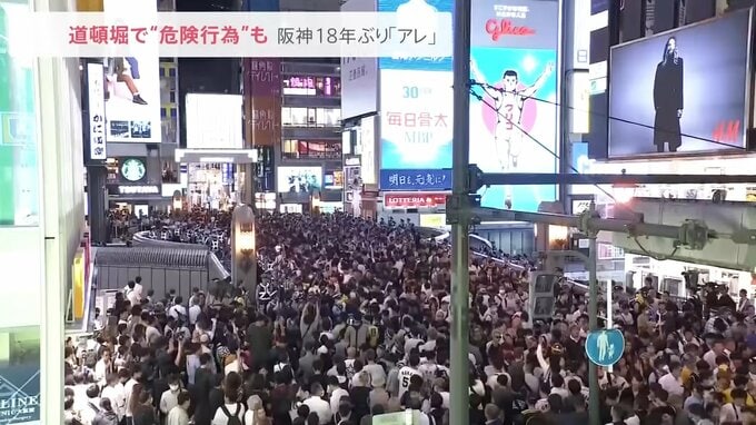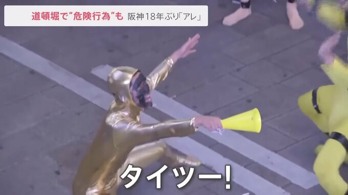 18年ぶりの優勝で、東京の阪神ファンが“熱盛コール”で熱狂!大阪・道頓堀では、川へのダイブや柱によじ登る“危険行為”が相次ぎました。