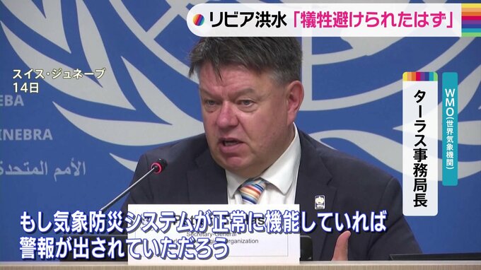 アフリカ北部のリビアを襲った大雨による大洪水で、WMO=世界気象機関は気象や防災のシステムが機能していないことが、多くの犠牲者を出した要因になったと指摘しました。WMO(世界気象機関)ターラス事務局長「も…