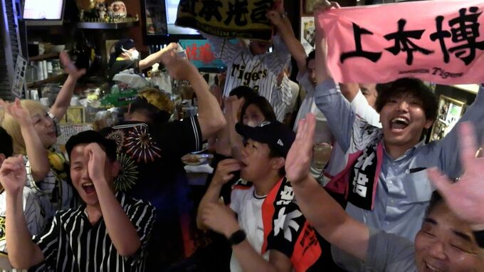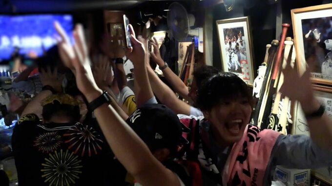 「岡山市内の飲食店では阪神ファンが大勢集まってみなさん応援しています」
