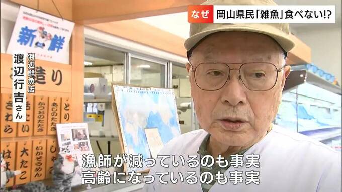 岡山市の老舗鮮魚店を訪れると、様々な雑魚が所狭しと並んでいましたが、年々雑魚を狙う漁師は減っているといいます。