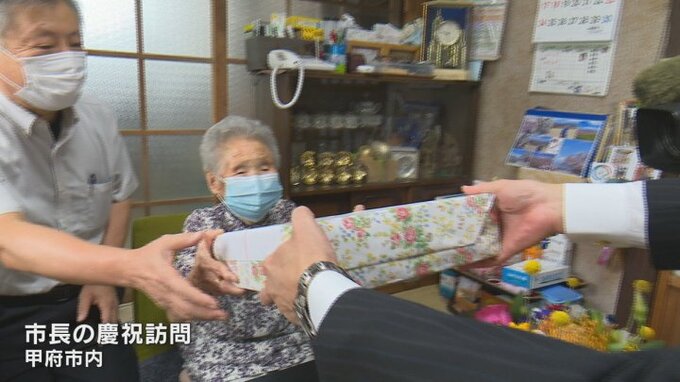 9月18日の敬老の日を前に甲府市の樋口雄一市長が、夫婦で101歳を迎えた市内最高齢夫婦の家を訪れ、長寿を祝いました。