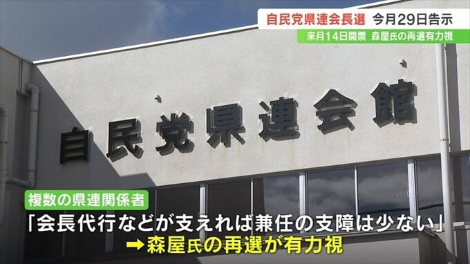 ただ、複数の県連関係者は「会長代行などが支えれば会長職との兼務による支障は少ない」などと話していて、次の衆院選を見据えて森屋さんの再選が有力視されています。