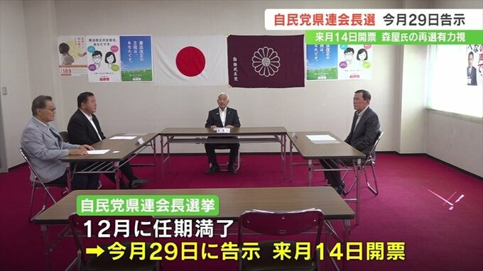 自民党県連会長は12月に2年間の任期が満了するため、県連は15日に選挙管理委員会を開き、会長選挙の日程などを決めました。