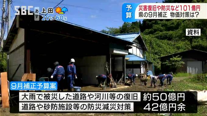 このうち、およそ50億円は大雨で被災した道路や河川などの復旧に充てられるほか、災害に備えた道路や砂防施設の整備に42億円余りが充てられています。
