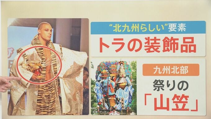 では北九州らしさってどんなところなのか、例えばこの衣装、製作費100万円を超えるぐらいなんですけれども、どこが北九州らしいかといいますと、この虎の装飾品がまさに北九州。九州北部の祭り、山笠ありますよね、あの山笠を作っている方が、これを製作したんです。