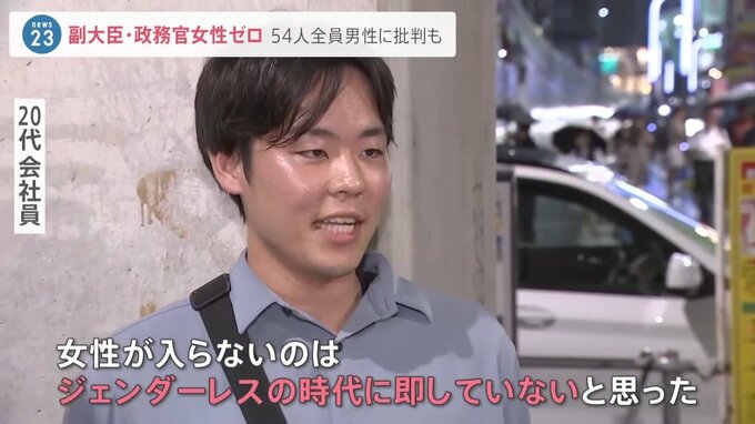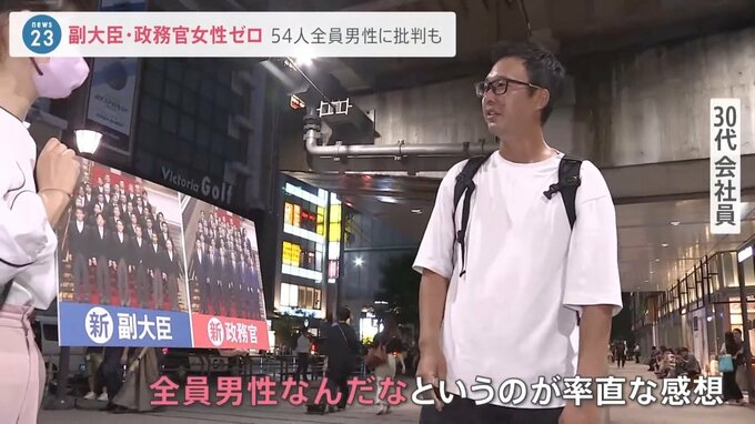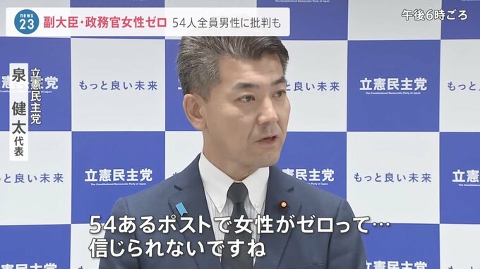 新たに任命された副大臣と政務官。あわせて54人のポストに女性の登用はゼロでした…。立憲民主党・泉代表「女性がゼロって…信じられないですね」“女性活躍”アピールの矢先の“男性のみ”人選が物議をかもしています。