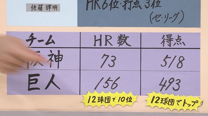 例えば、ホームランと打点で、チームトップの佐藤輝明も、セリーグのランキングでは、6位と3位にとどまっています。(9月16日時点)