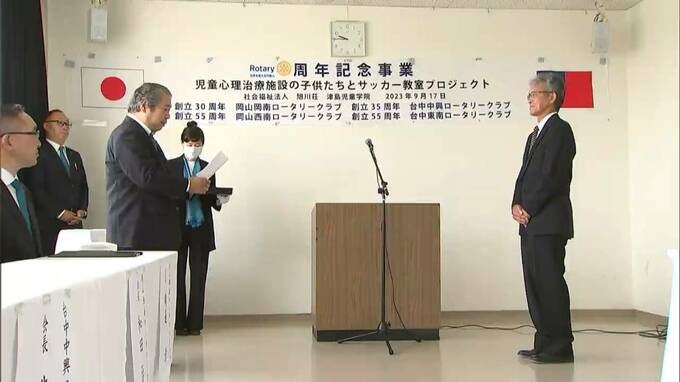 岡山市北区の児童福祉施設で様々な理由で心のケアを受ける子どもたちに、運動場で思い切り球技を楽しんでもらおうと、岡山岡南ロータリークラブが防球ネットを贈りました。岡山岡南ロータリークラブから「津島児童…