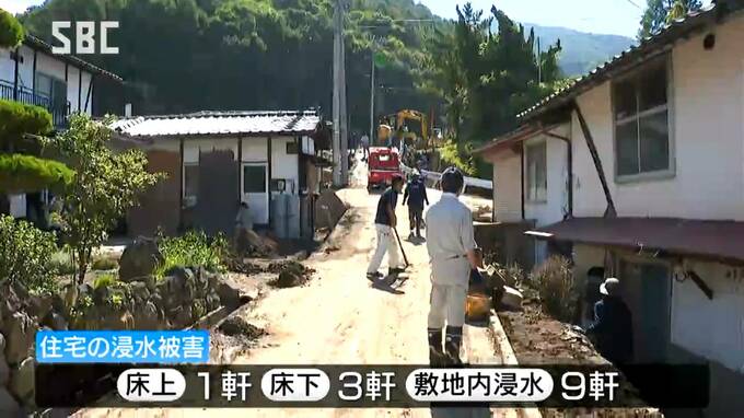 周辺の住宅に浸水被害が出ていて、床上が1軒、床下が3軒のほかに、敷地内に泥などが入った家が9軒あるということです。