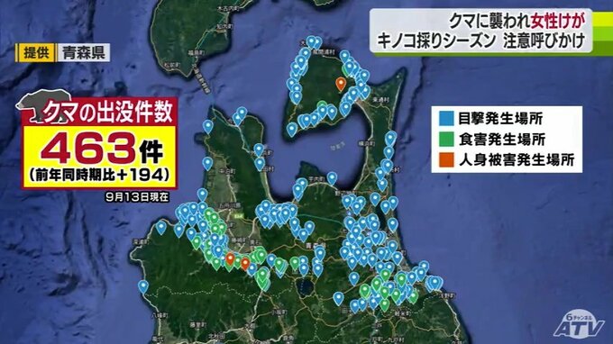 青森県鰺ヶ沢町の山で17日、キノコ採りに入った70代の女性がクマに襲われ、顔や首にけがをしました。クマによる人的被害はことしに入って4件目で、県が注意を呼びかけています。※リポート村上怜生記者「女性が襲…