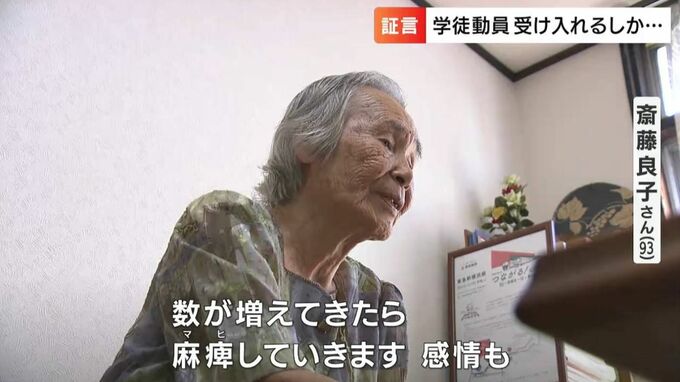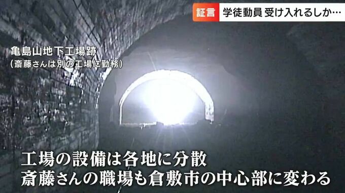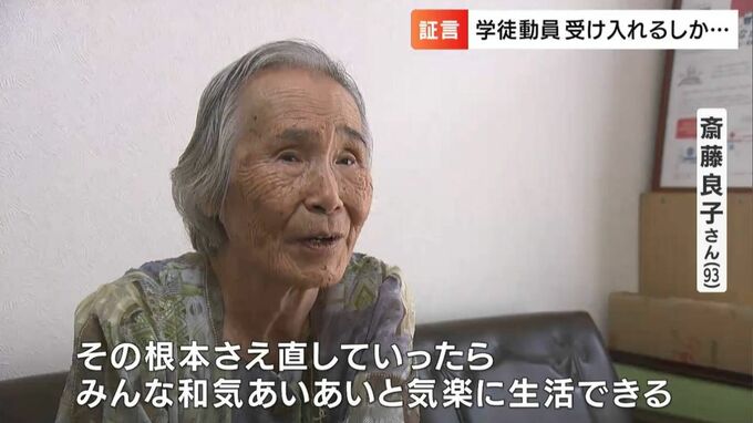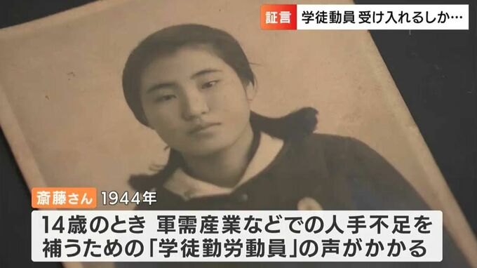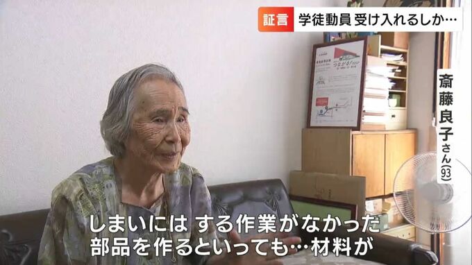 笠岡市に暮らす斎藤良子さん、93歳です。1944年10月、女学生だった14歳の時に軍需産業などでの人手不足を補うためのいわゆる学徒動員の声がかかりました。終戦までに全国で340万人を超えたとされる学徒動員。
