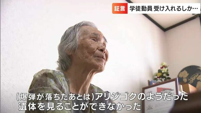 (斎藤良子さん・93)「(爆弾の落ちたあとは)アリ地獄のようだった。遺体を見る事ができなかった」