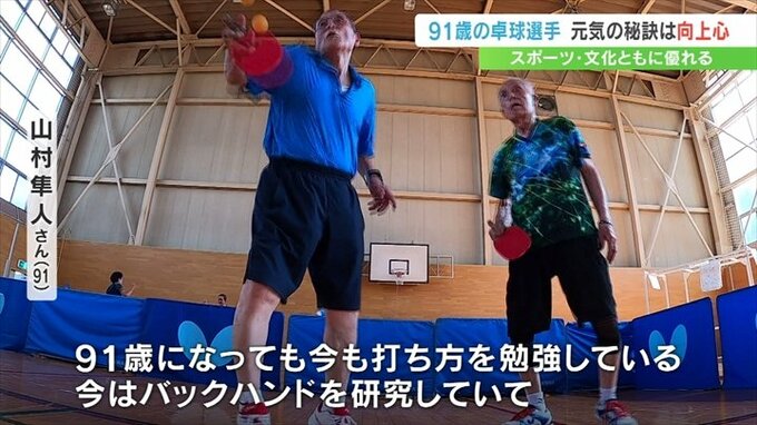 91歳になっても今も打ち方を勉強している。今はバックハンドを研究していて。人のできないことをやりたくて、それが大きな原動力になっている。