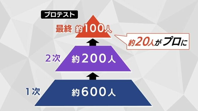 毎年およそ600人が受験しますがプロになれるのは20人ほど。