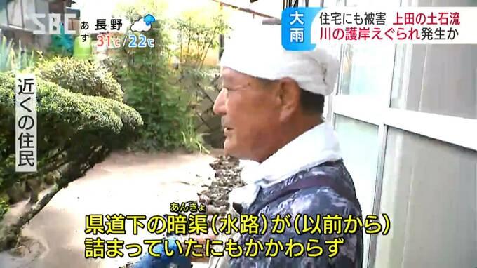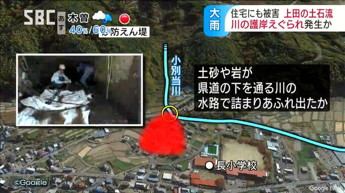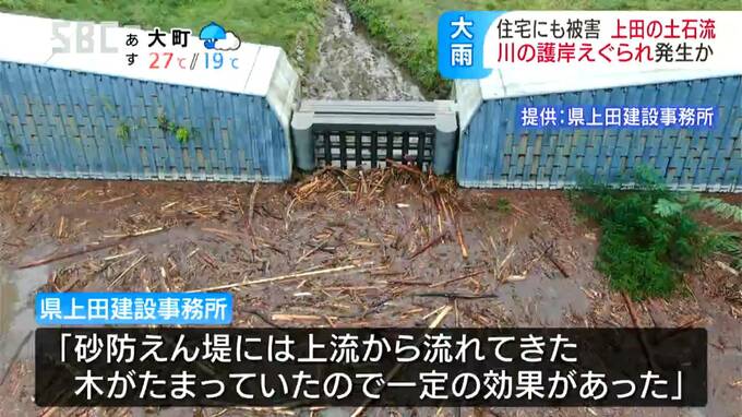 原因を調べている県の上田建設事務所は取材に対し、「水路が普段から詰まっていたという話は聞いたことがない」、「砂防堰堤には上流から流れてきた木がたまっていたので、一定の効果があった」などと話しています。