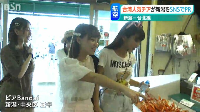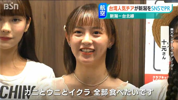 「カニー、カニー食べたい」新潟市 中央区の「ピアBandai」を訪れたのは、タイガーエア台湾とパートナーシップを結ぶ台湾の球団 楽天モンキーズのチアリーダー、