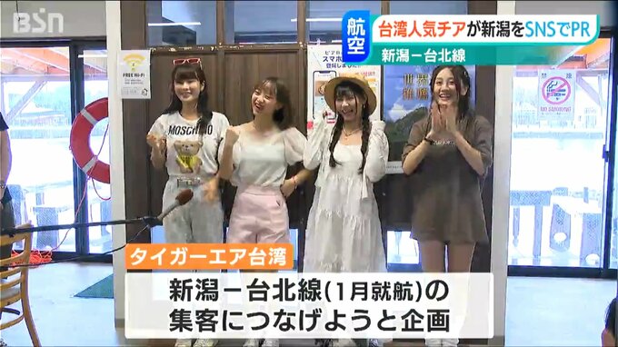 台湾の格安航空会社 タイガーエア台湾の新潟ー台北線をPRしようと、台湾の人気チアガールが県内を訪れ、新潟の魅力をSNSで発信しています。