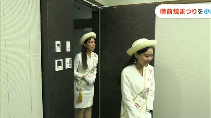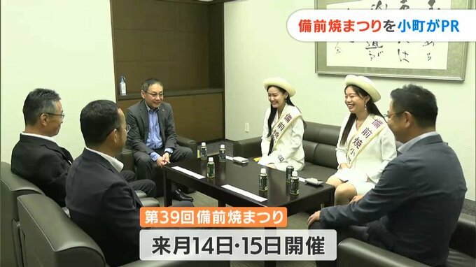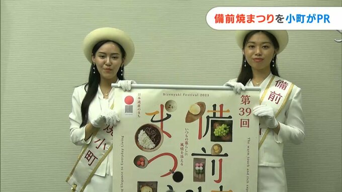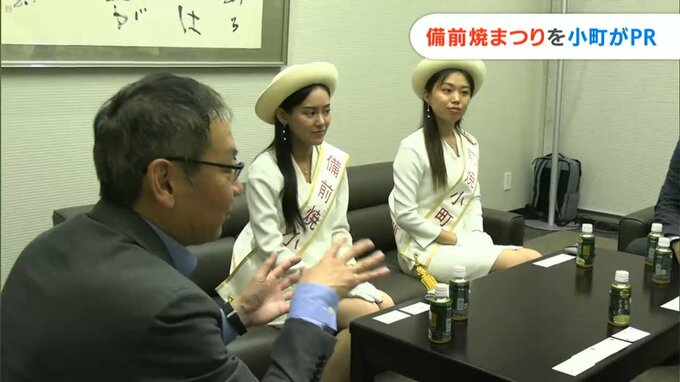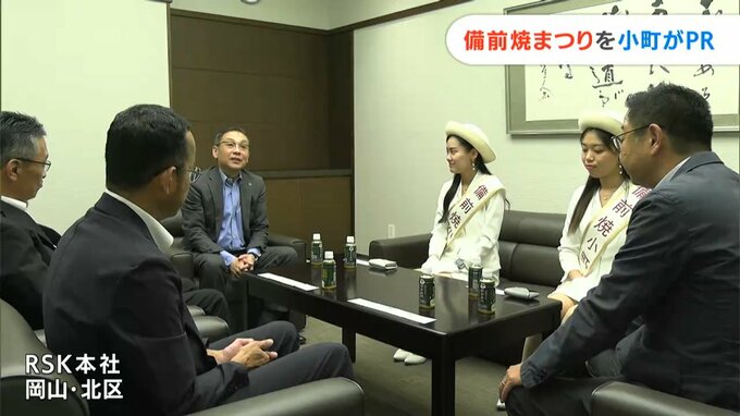 来月(10月)開かれる備前焼まつりのPRのため、備前焼小町らが岡山市北区のRSKを訪れました。