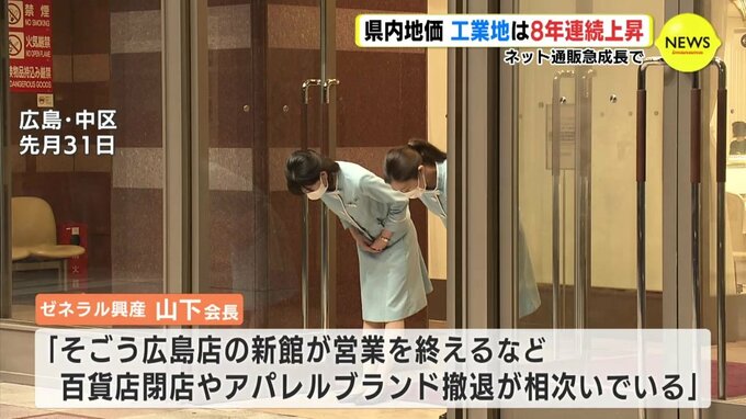 広島で50年、不動産業を手がけるゼネラル興産の山下会長は、先月末にそごう広島店の新館が営業を終えるなど、百貨店の閉店やアパレルブランドの撤退が相次いでいると指摘。