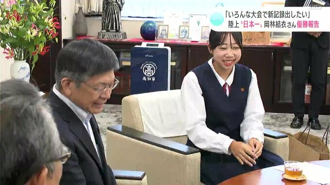 8月に開催された全日本中学校陸上競技選手権大会の、女子100mで優勝した岡林結衣(おかばやし・ゆい)さんが、高知市長に優勝を報告しました。高知市役所を訪問したのは高知市の大津中学校2年生=岡林結衣さんです…