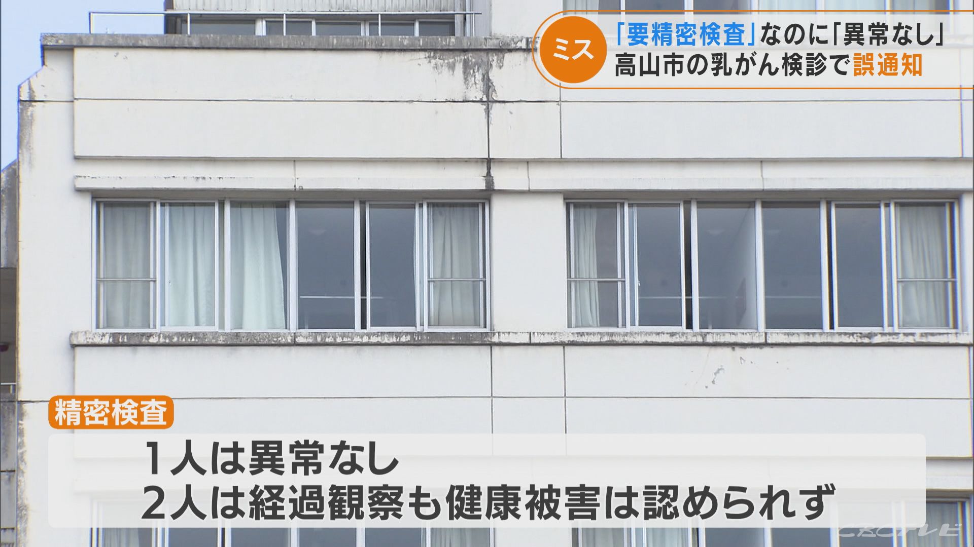 高山市によりますと、乳がん検診を委託している高山赤十字病院で、2020年度と昨年度に乳がん検診を受けた406人のうち3人に、「要精密検査」と伝えるべきところ「異常なし」と通知していたことがわかりました。