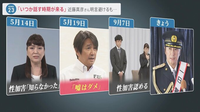 ジャニー喜多川氏の性加害問題で、ジャニーズ事務所は取締役会を開き、社名の変更など今後の運営の方向性について議論したと発表しました。来月2日にはその進捗について報告するとしています。近藤真彦さんは性加害問題について公の場で発言しましたが、「いつか話す時期が来る」と明言は避けました。