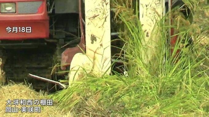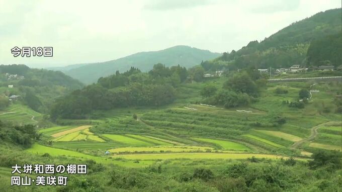 農林水産省の「つなぐ棚田遺産」にも認定されている岡山県美咲町の棚田で、稲刈りが最盛期を迎えています。