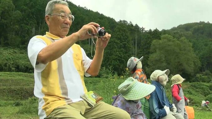 ユニークなカカシが棚田を見守る展望台には、多くの見物客が訪れていました。