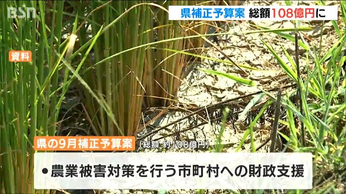 猛暑や少雨による農業被害への支援や物価高対策などを盛り込んだ新潟県の補正予算案が発表されました。総額は、およそ108億円となっています。