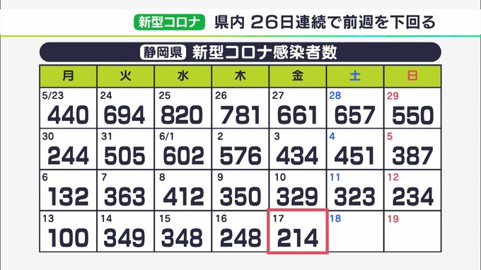 6月17日、静岡県内では、新たに214人が新型コロナウイルスに感染したことが分かりました。新たな感染者を自治体別に見ますと、浜松市が50人、静岡市が43人、富士市が13人などとなっています。亡くなった人や新たな…