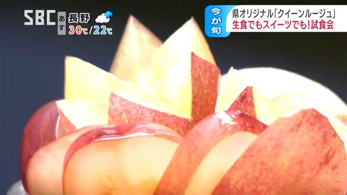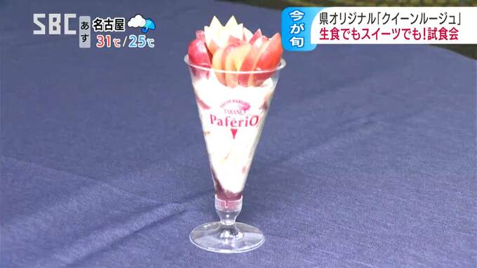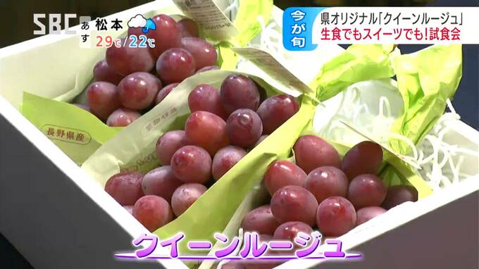 長野県のオリジナル品種のブドウ「クイーンルージュ」を使ったスイーツの試食会が開かれました。