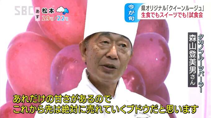 タカノフルーツパーラー 森山登美男さん:「一回食べてみておいしいとわかればクイーンルージュはもっと売れるようになるし、あれだけの甘さがあるのでこれから先は絶対に売れていくブドウだと思います」