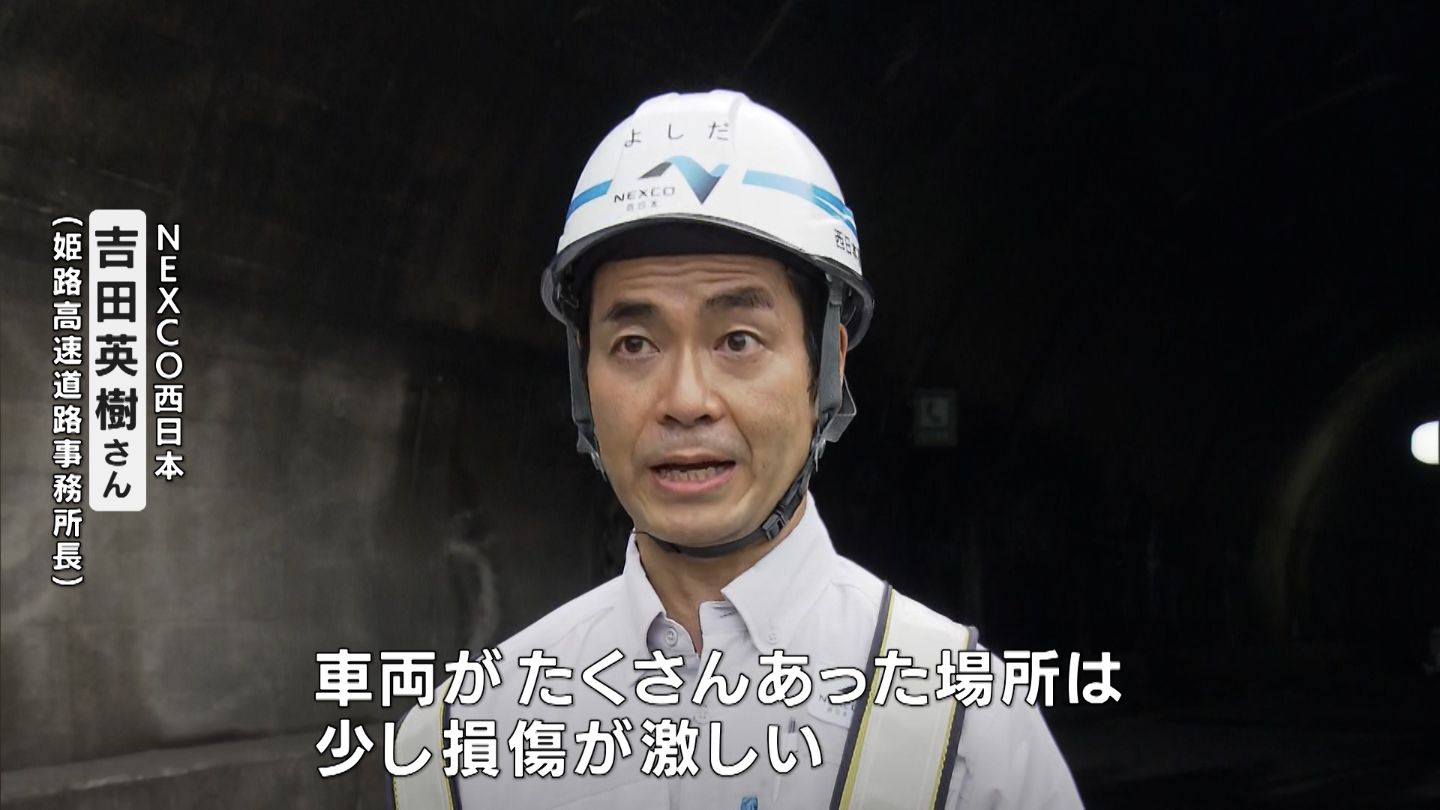 兵庫県赤穂市を通る、山陽自動車道・下りの尼子山トンネルです。きょう(20日)報道陣に、車両火災の起きたトンネルの内部が公開されました。